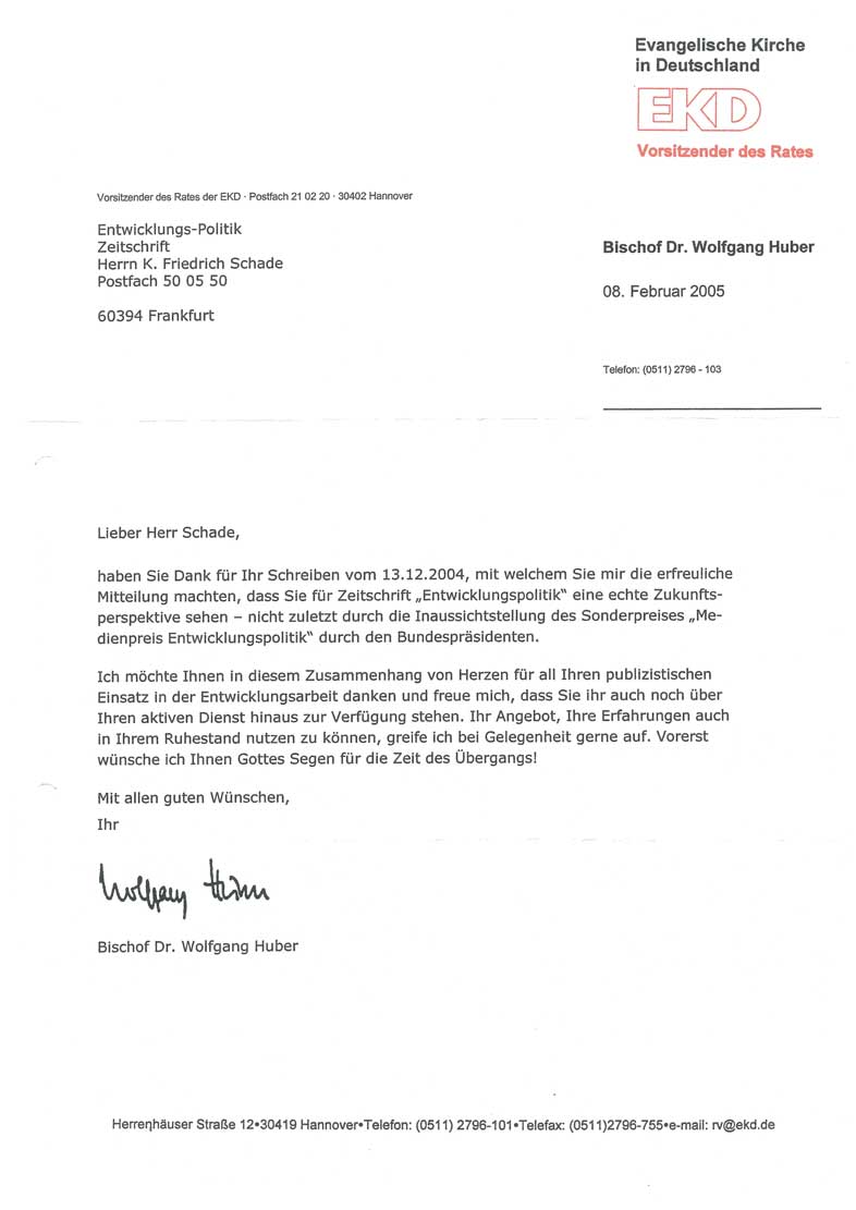 Bischof Dr. Wolfgang Huber an kfs 2005