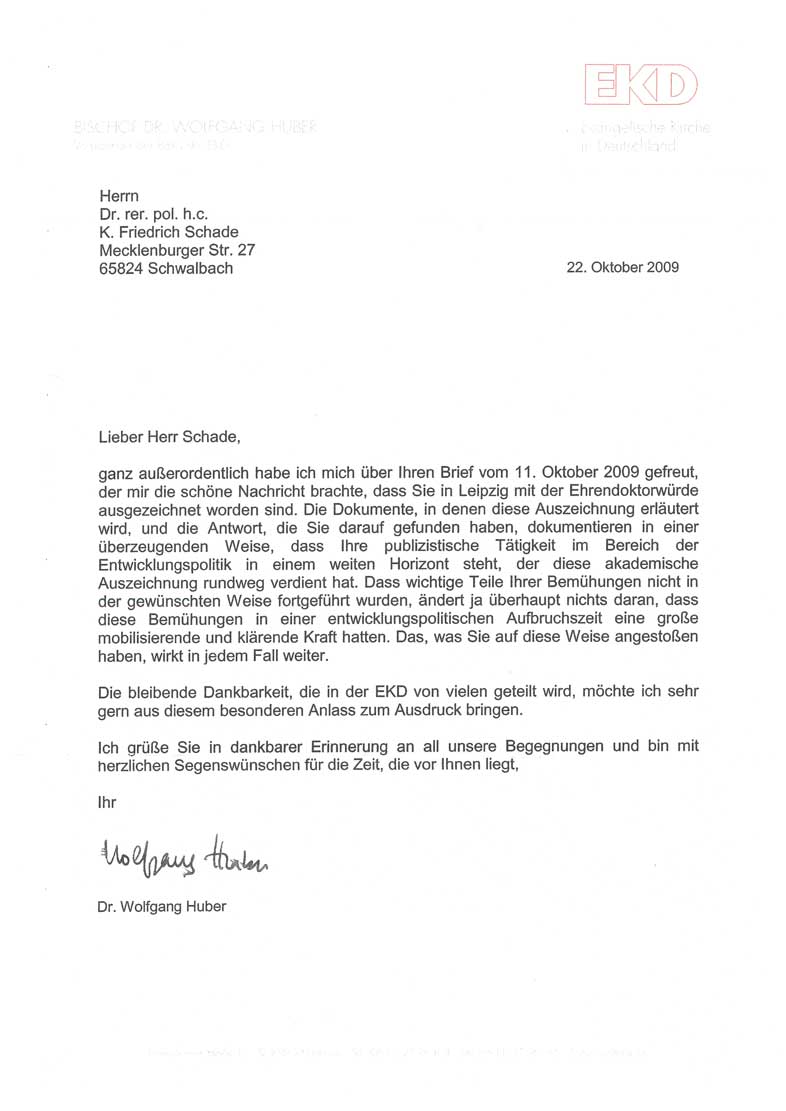 Bischof Dr. Wolfgang Huber an kfs 2009